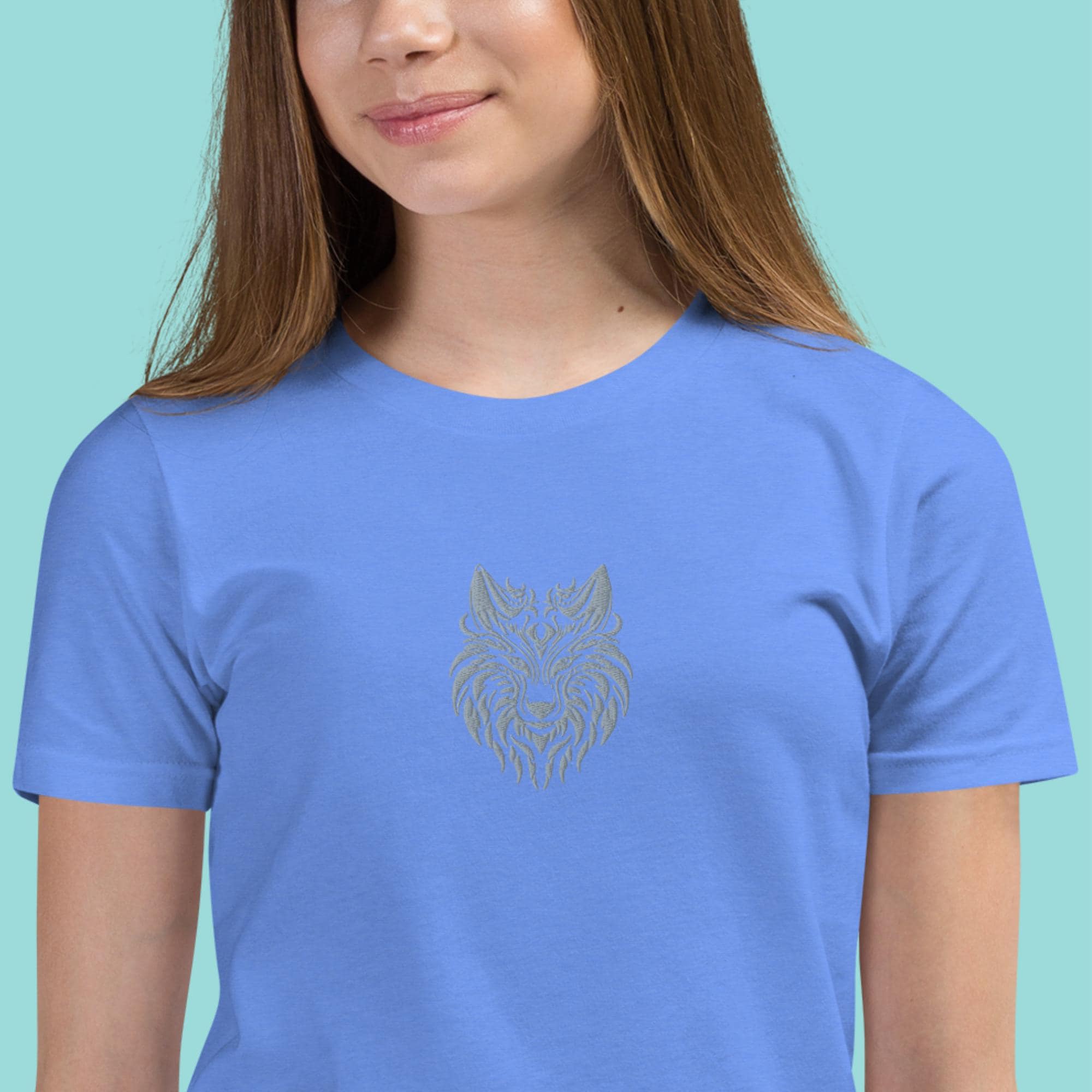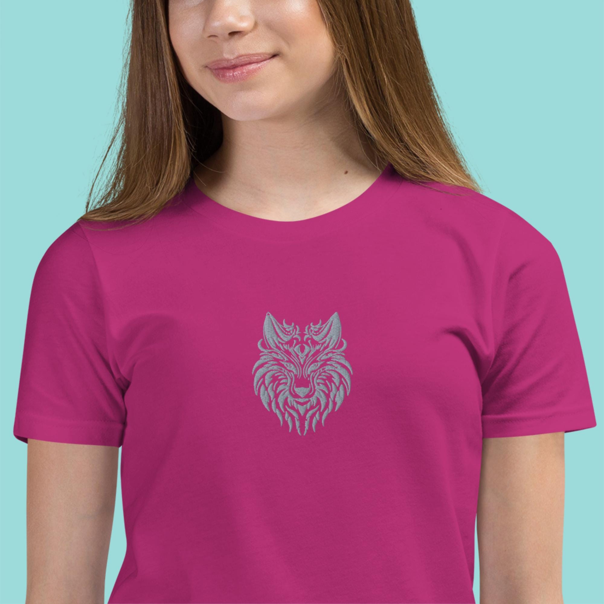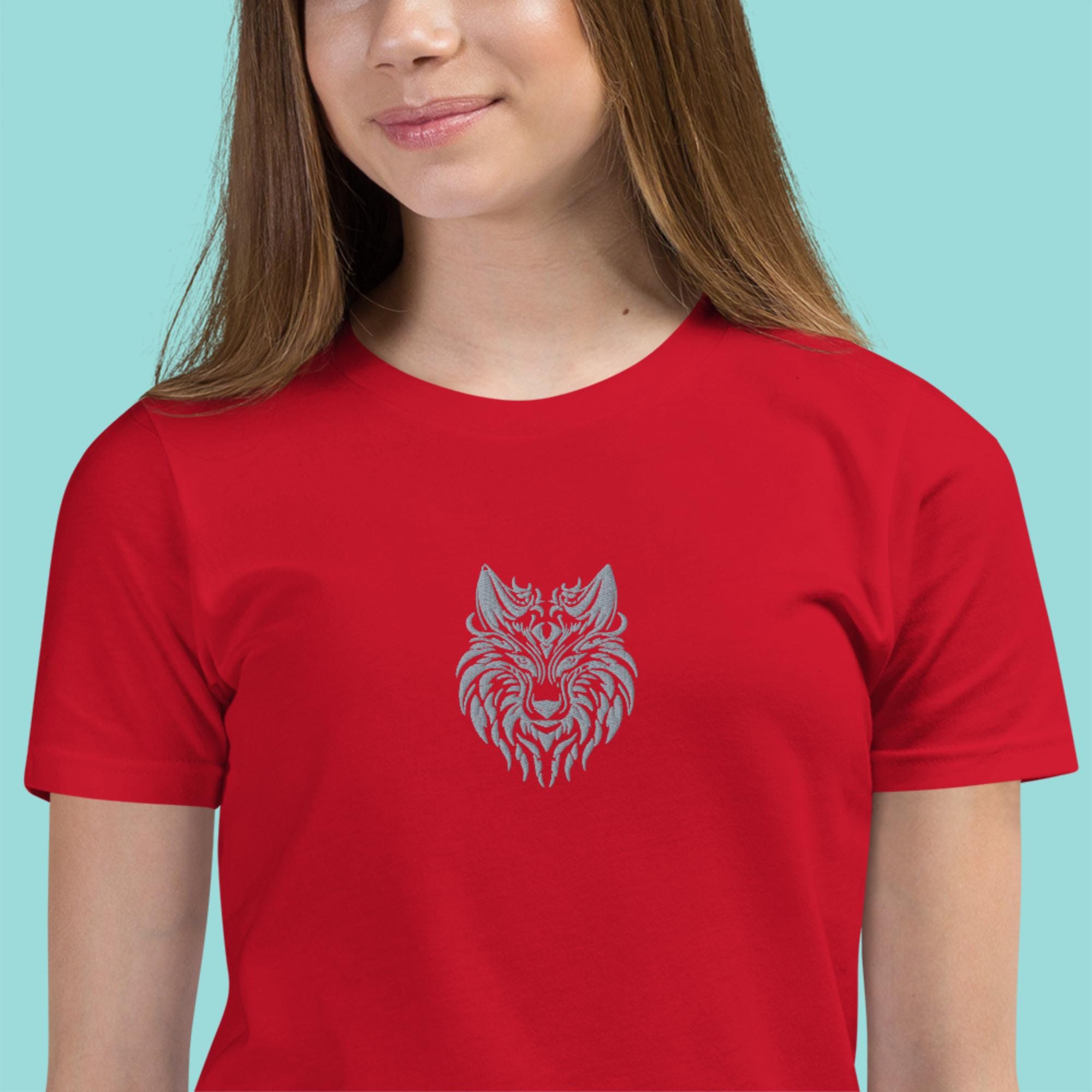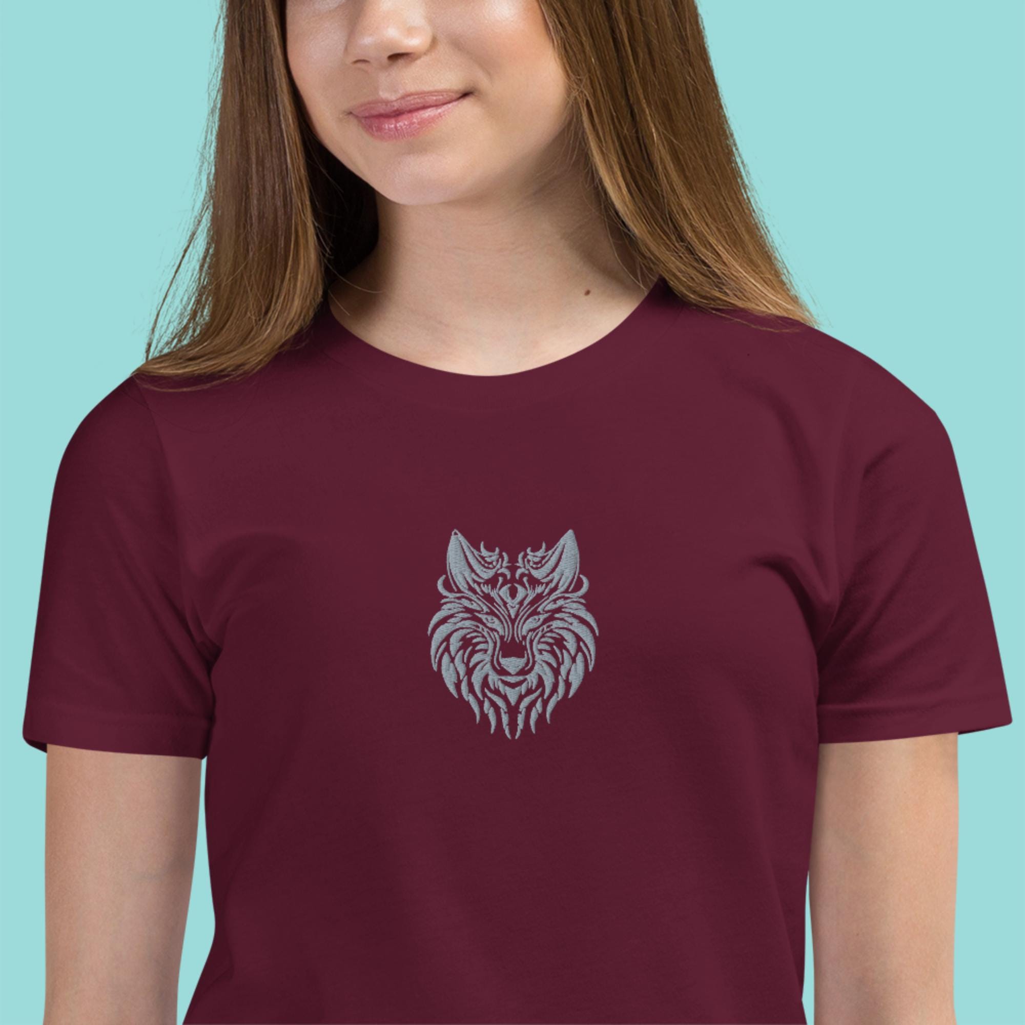 Unleash your child's wild side with our Fierce Fashion: Girls' T-Shirt with Embroidered Wolf Design! This stylish tee features a stunning embroidered wolf Head design that embodies strength and adventure. Perfect for any young explorer, this shirt blends comfort with unique flair. Made from soft, breathable cotton fabric, it’s perfect for everyday wear or special outings. Available in multiple sizes, this fierce fashion statement is a must-have for any girl's wardrobe. Let her express her bold personality today!