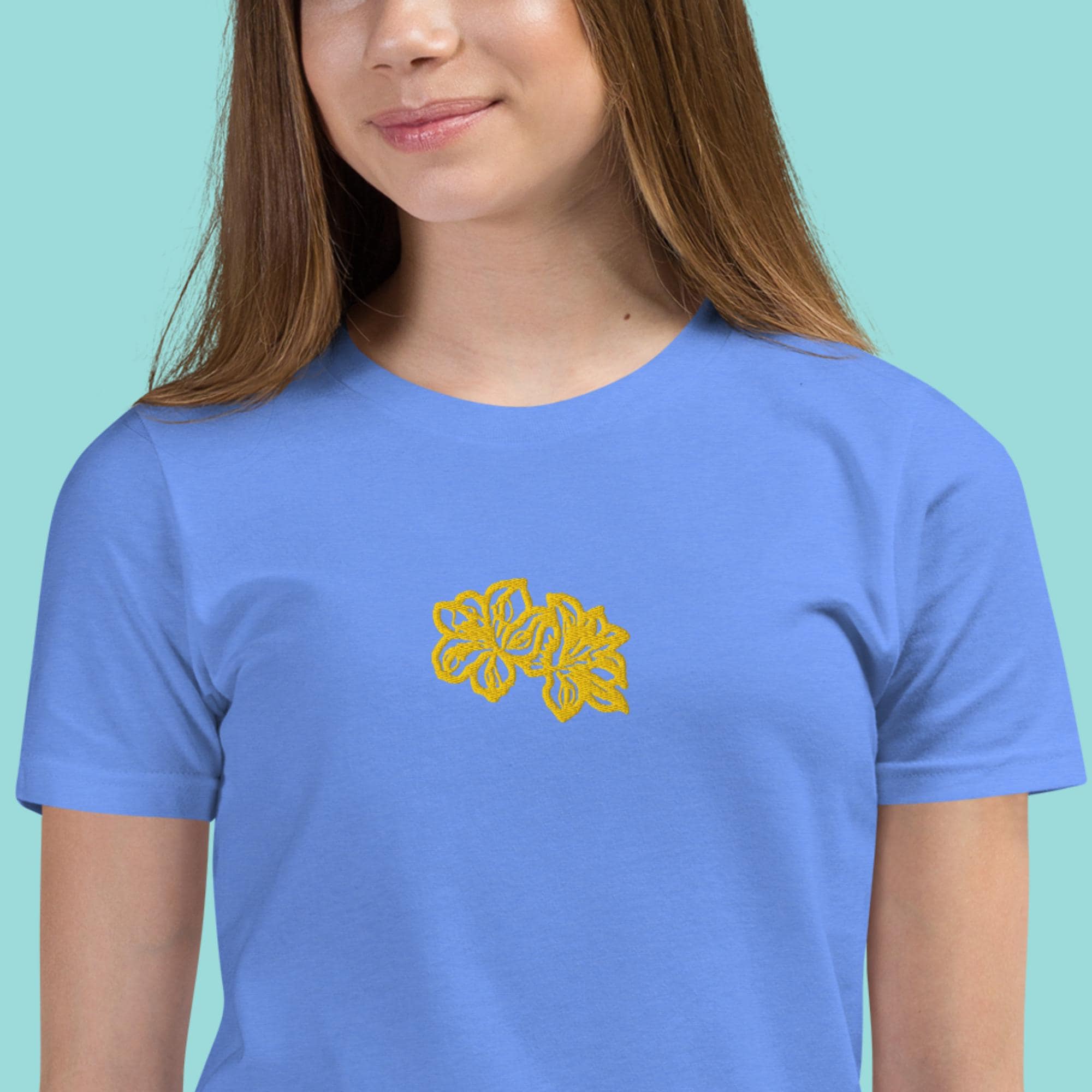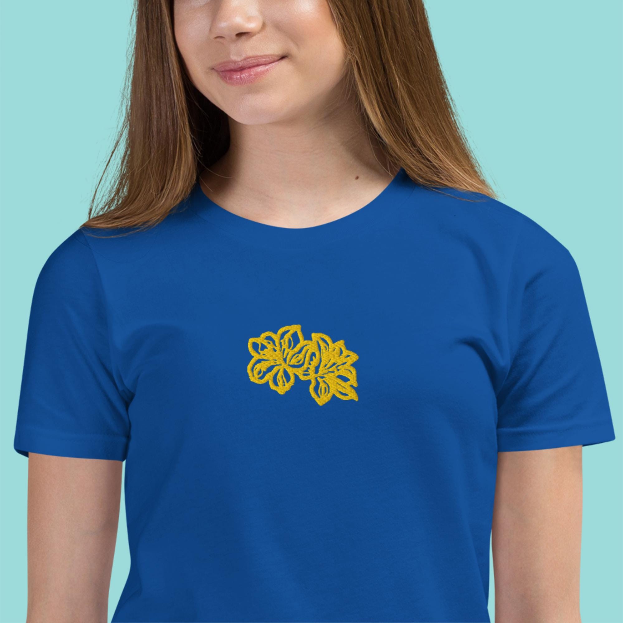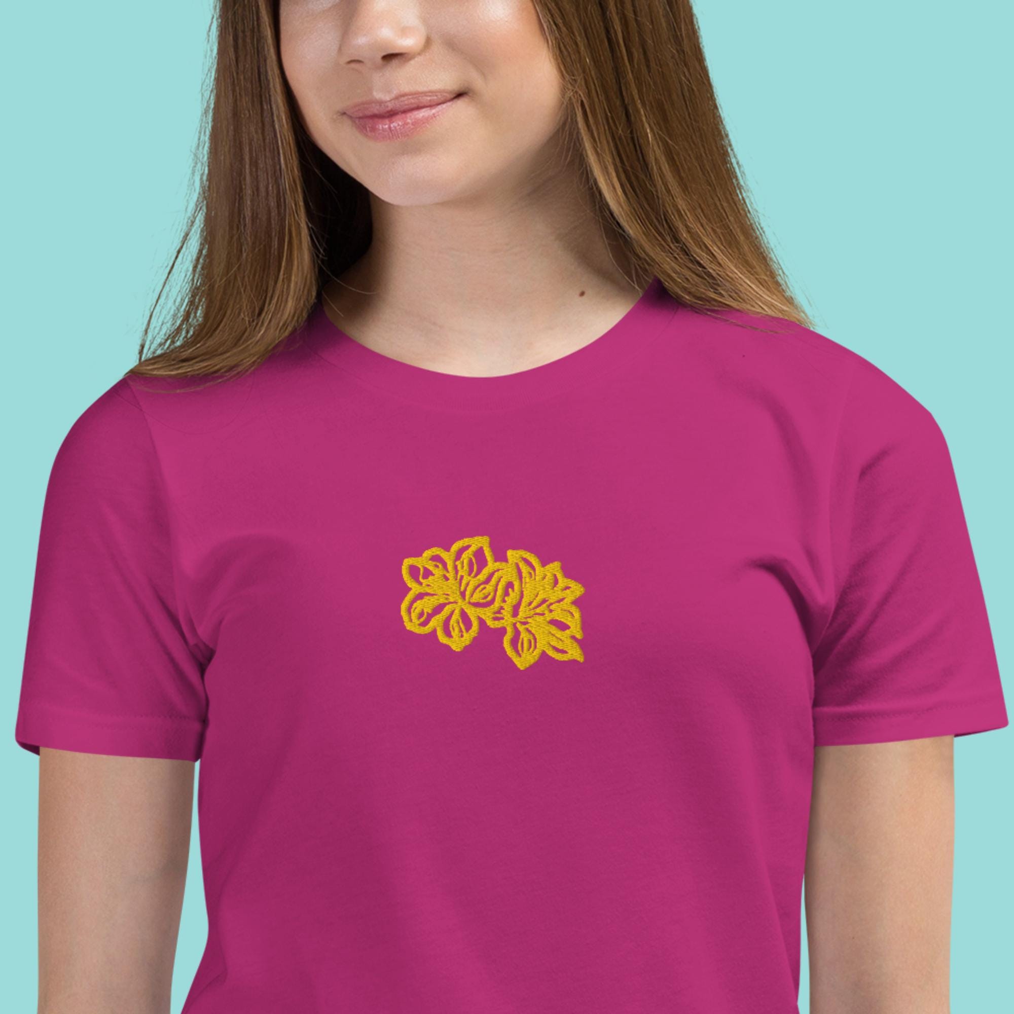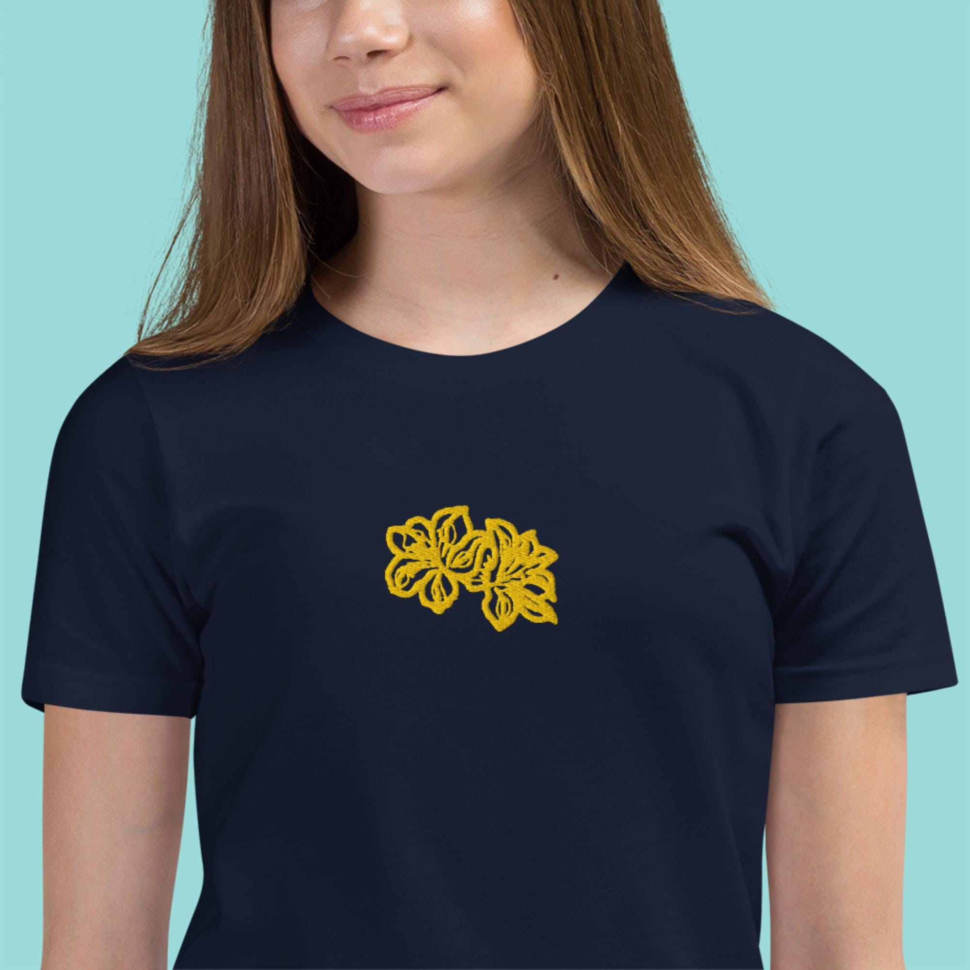 Brighten up your little one's wardrobe with our charming Girls T-shirt featuring a delightful yellow embroidered flower design! Crafted from soft, breathable cotton fabric, this shirt ensures comfort throughout the day, making it perfect for playdates or casual outings. The vibrant yellow flower adds a touch of fun and personality, while the classic fit guarantees easy wear. Ideal for pairing with jeans or skirts, this T-shirt is a must-have for stylish young girls. Shop now to add a pop of color to her collection!