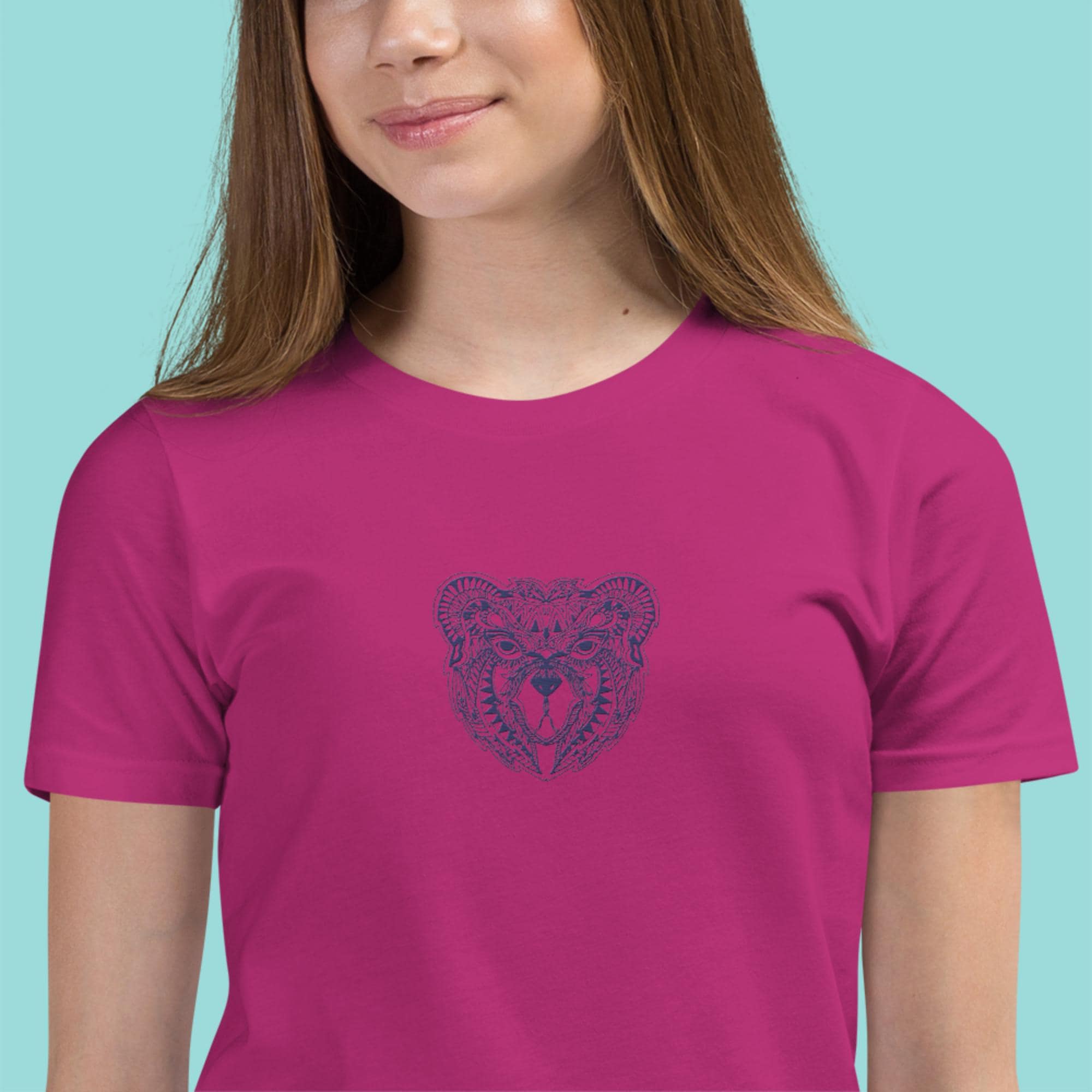Elevate your child's wardrobe with our adorable Child's Short Sleeve Cotton T-Shirt featuring an embroidered bear face design! Made from soft, breathable cotton, this playful tee ensures comfort all day long. Perfect for casual outings or playdates, it’s both stylish and functional. Available in multiple sizes, this t-shirt is a delightful gift for birthdays or special occasions. Dress your little one in a touch of whimsy with our unique bear face tee today!
