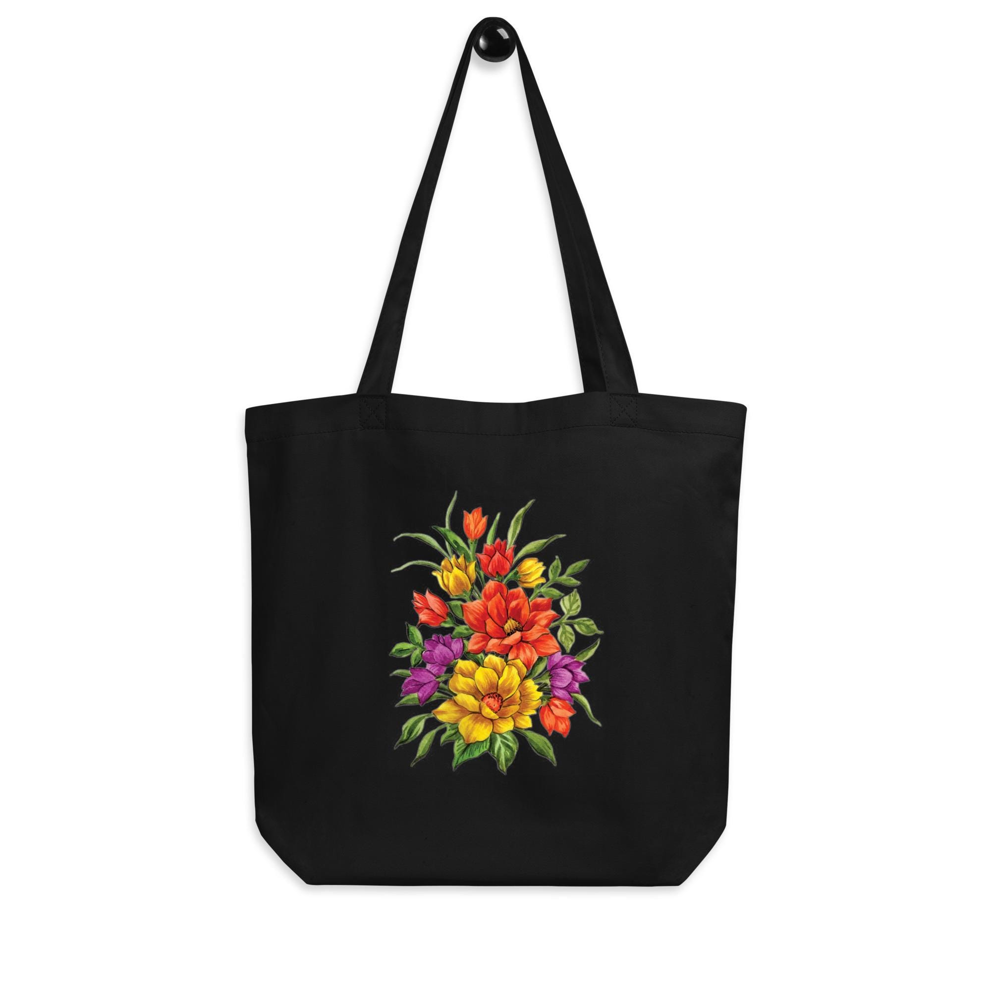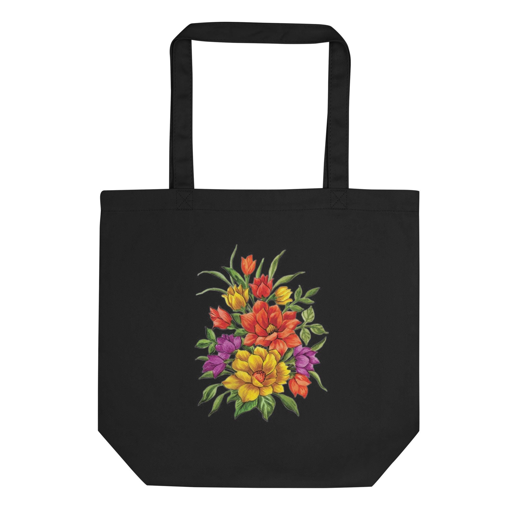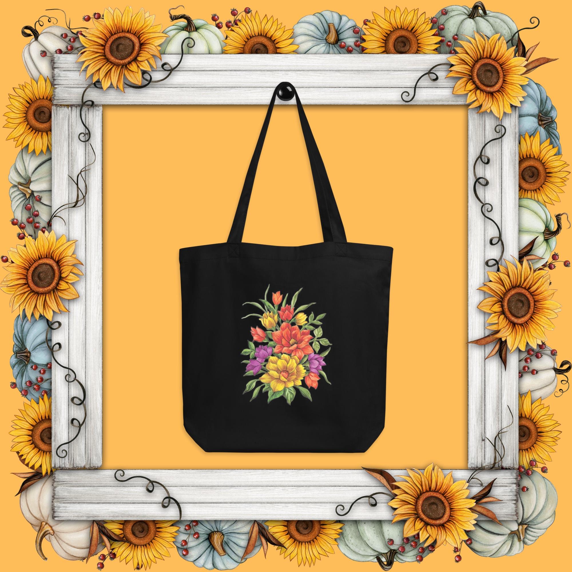 Embrace the beauty of fall with our Eco-friendly Tote Bag featuring a vibrant red, yellow, and purple Autumn flowers design on a sleek black background. Perfect for shopping, beach trips, or daily errands, this stylish tote adds a pop of color to any outfit while being kind to the planet. Made from durable, sustainable materials, it's both functional and fashionable. Stand out this season—grab your unique Autumn flower tote today and showcase your love for nature in style!