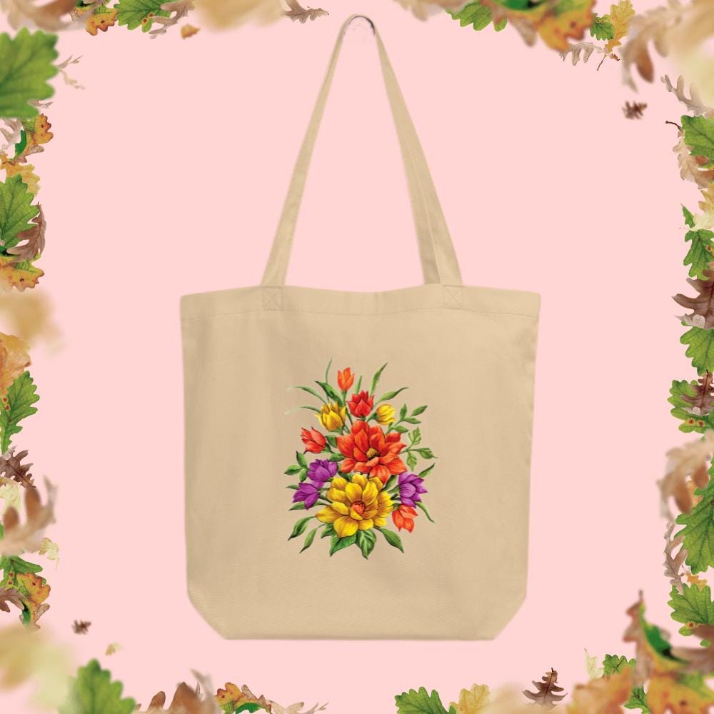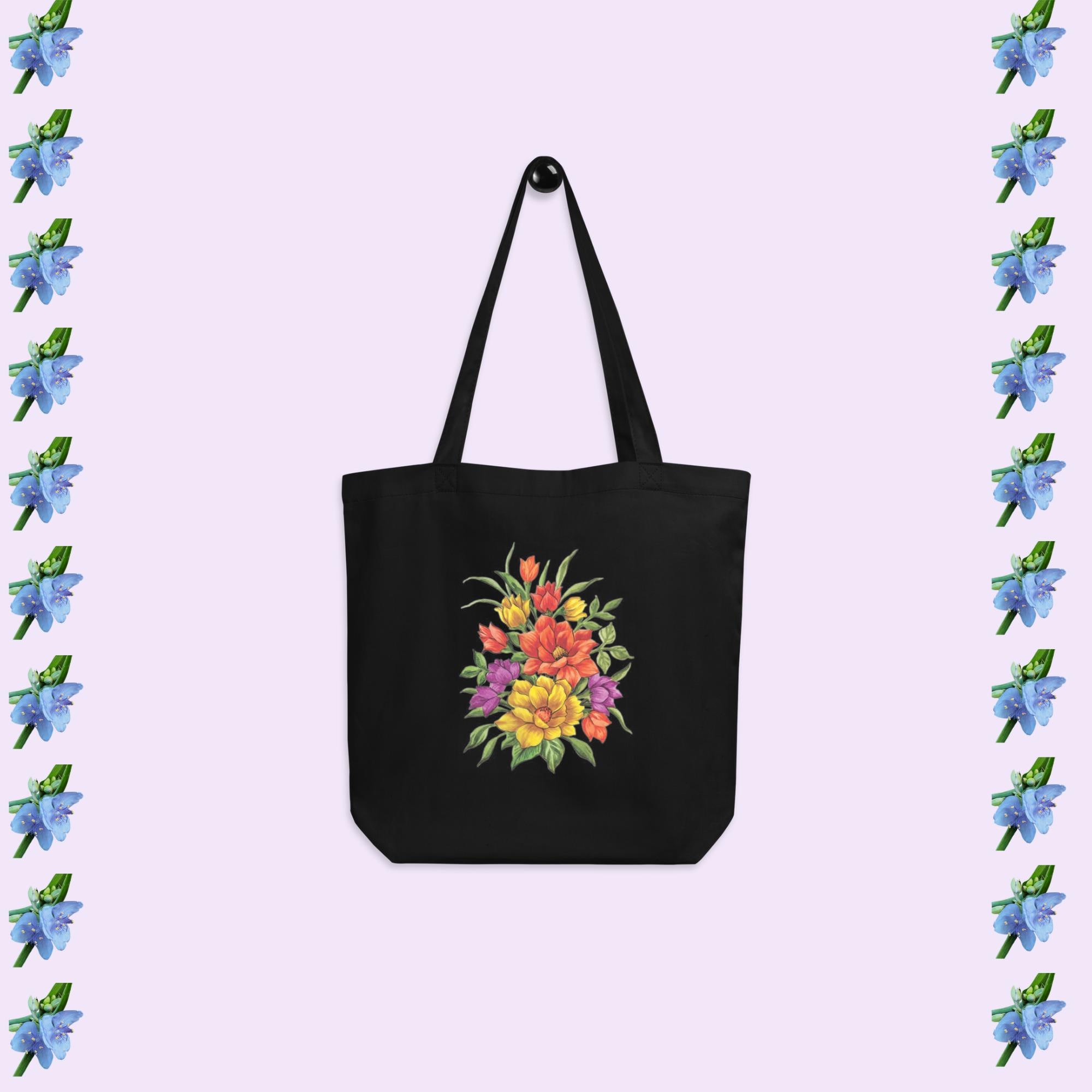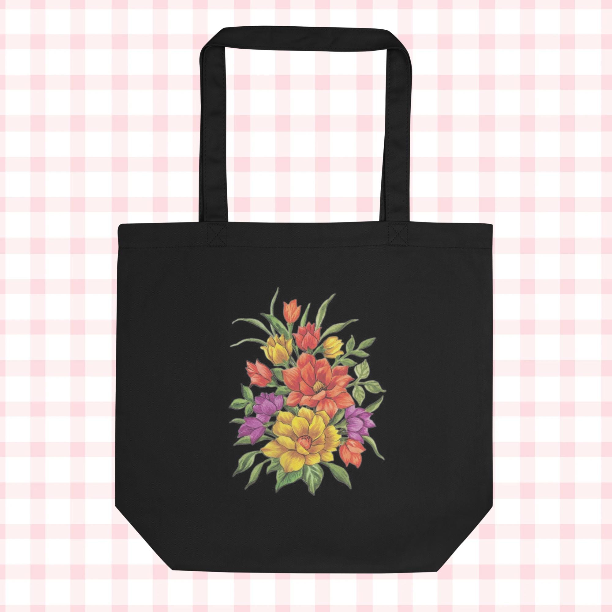 Embrace the beauty of fall with our Eco-friendly Tote Bag featuring a vibrant red, yellow, and purple Autumn flowers design on a sleek black background. Perfect for shopping, beach trips, or daily errands, this stylish tote adds a pop of color to any outfit while being kind to the planet. Made from durable, sustainable materials, it's both functional and fashionable. Stand out this season—grab your unique Autumn flower tote today and showcase your love for nature in style!