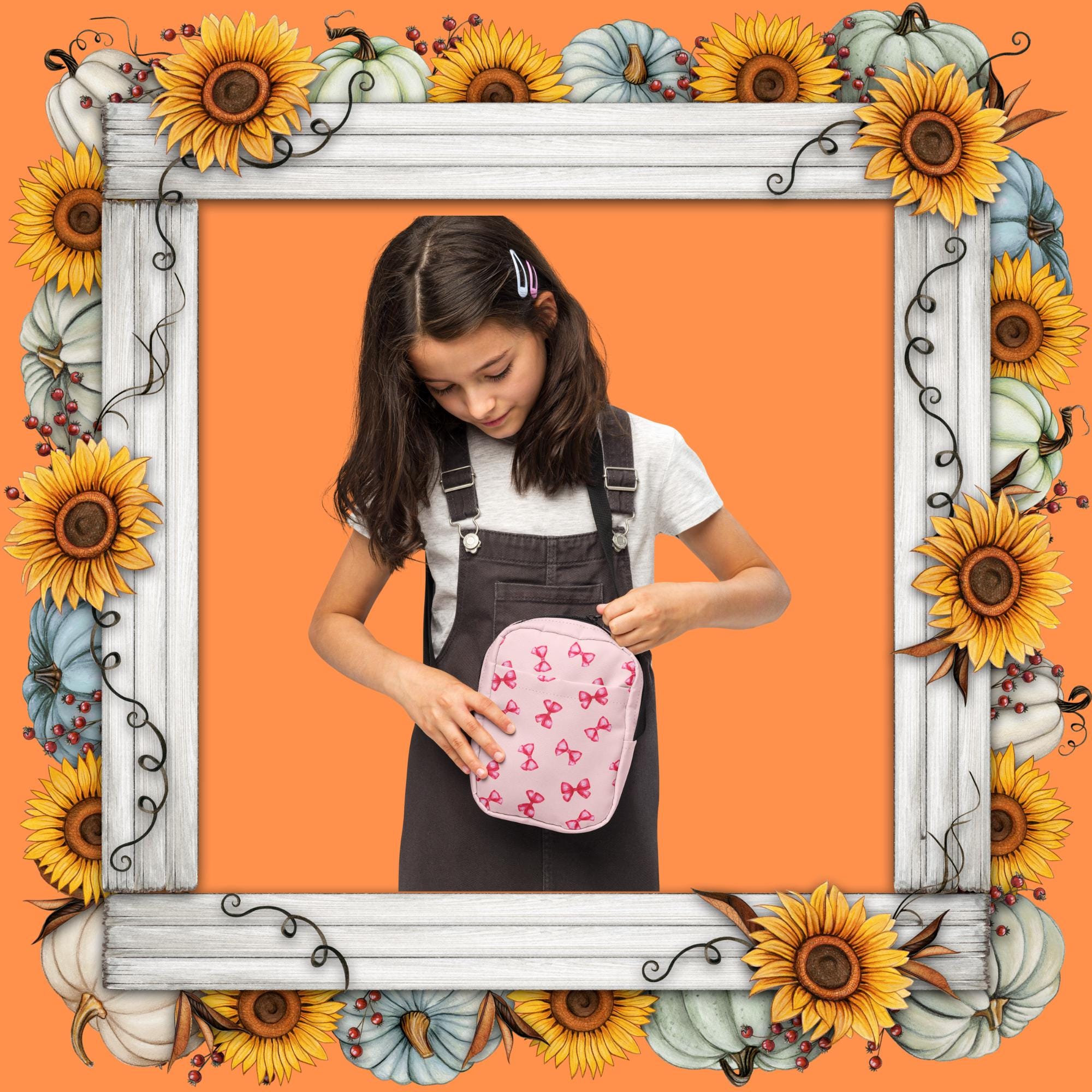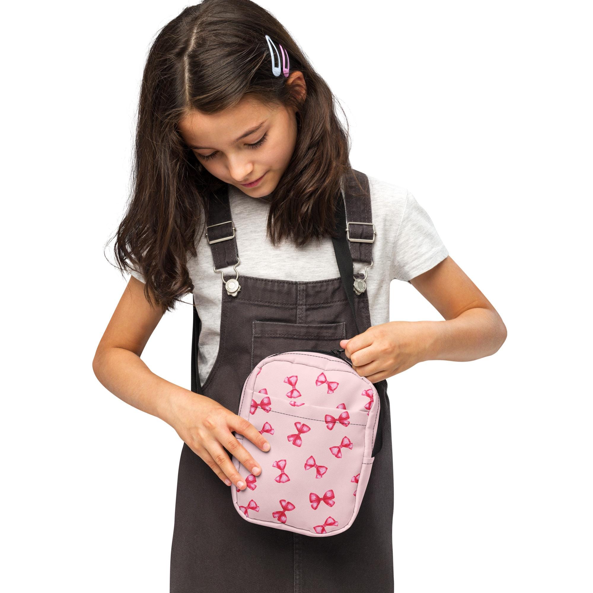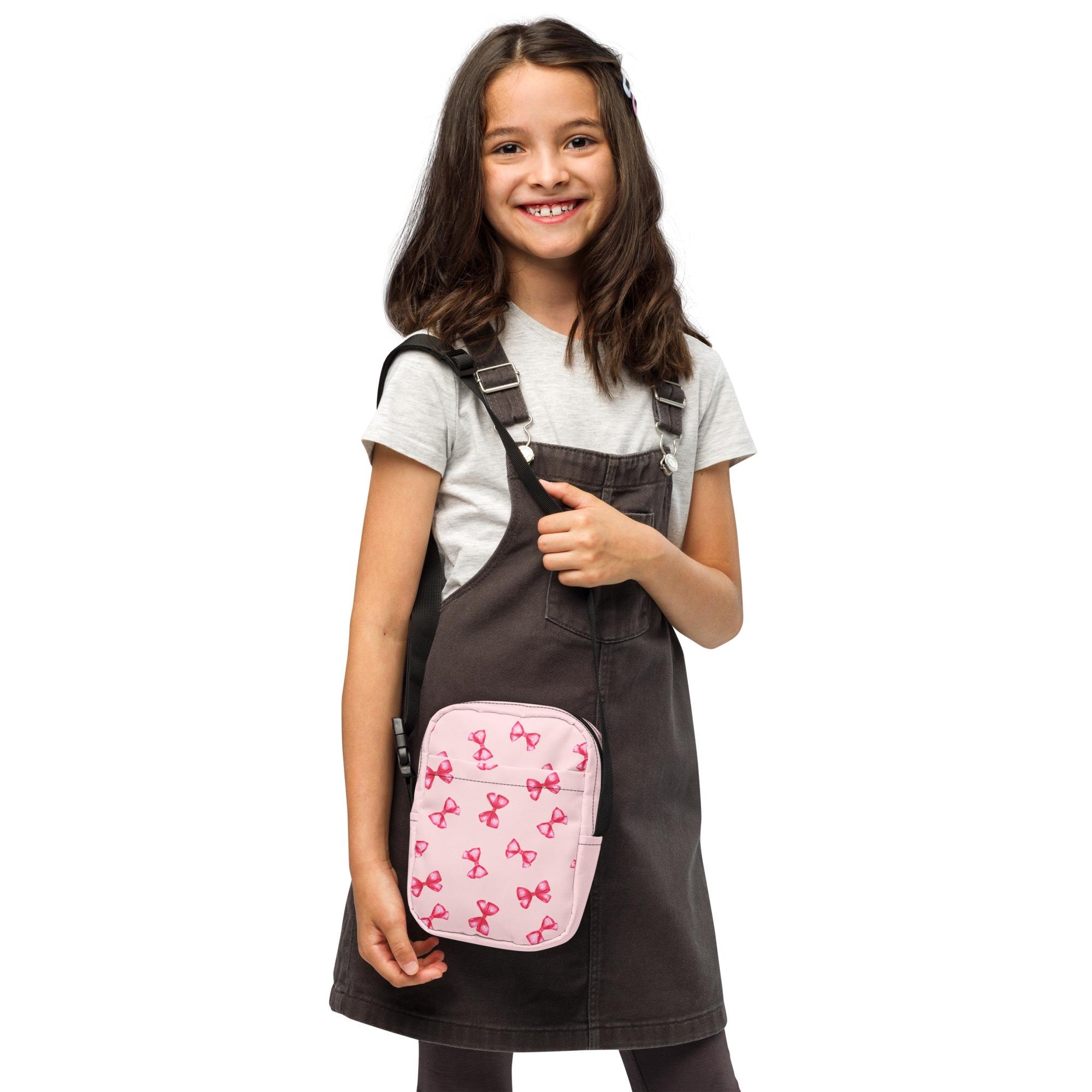 Introducing our adorable Girls Utility Crossbody Bag in a charming pink hue, adorned with playful hot pink bows! This stylish bag is perfect for carrying all her essentials while adding a pop of color to any outfit. Crafted for both fun and function, it features ample space and an adjustable strap for comfort. Ideal for outings, playdates, or school, this crossbody bag is a must-have accessory for every young fashionista. Grab one for your little girl today and let her shine!