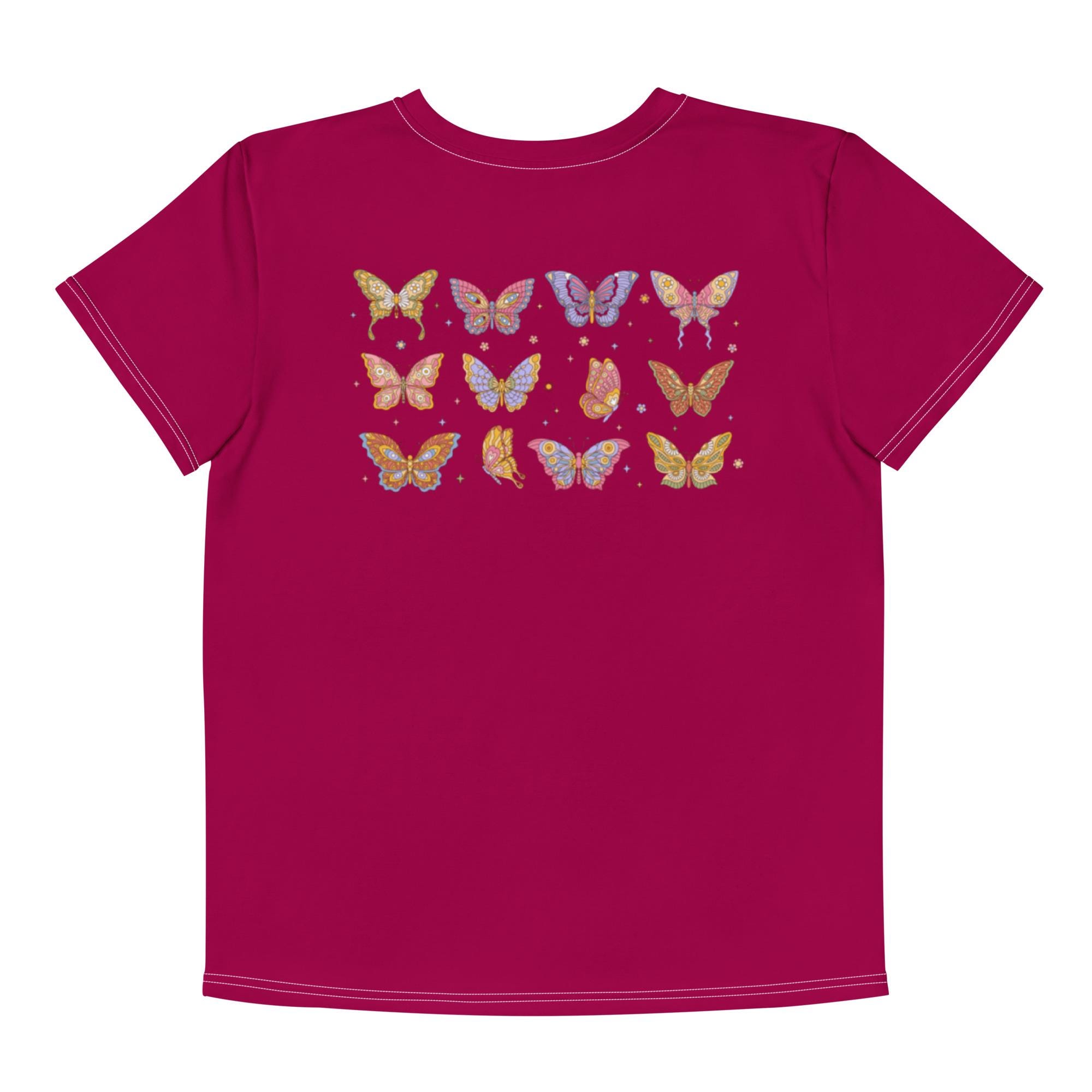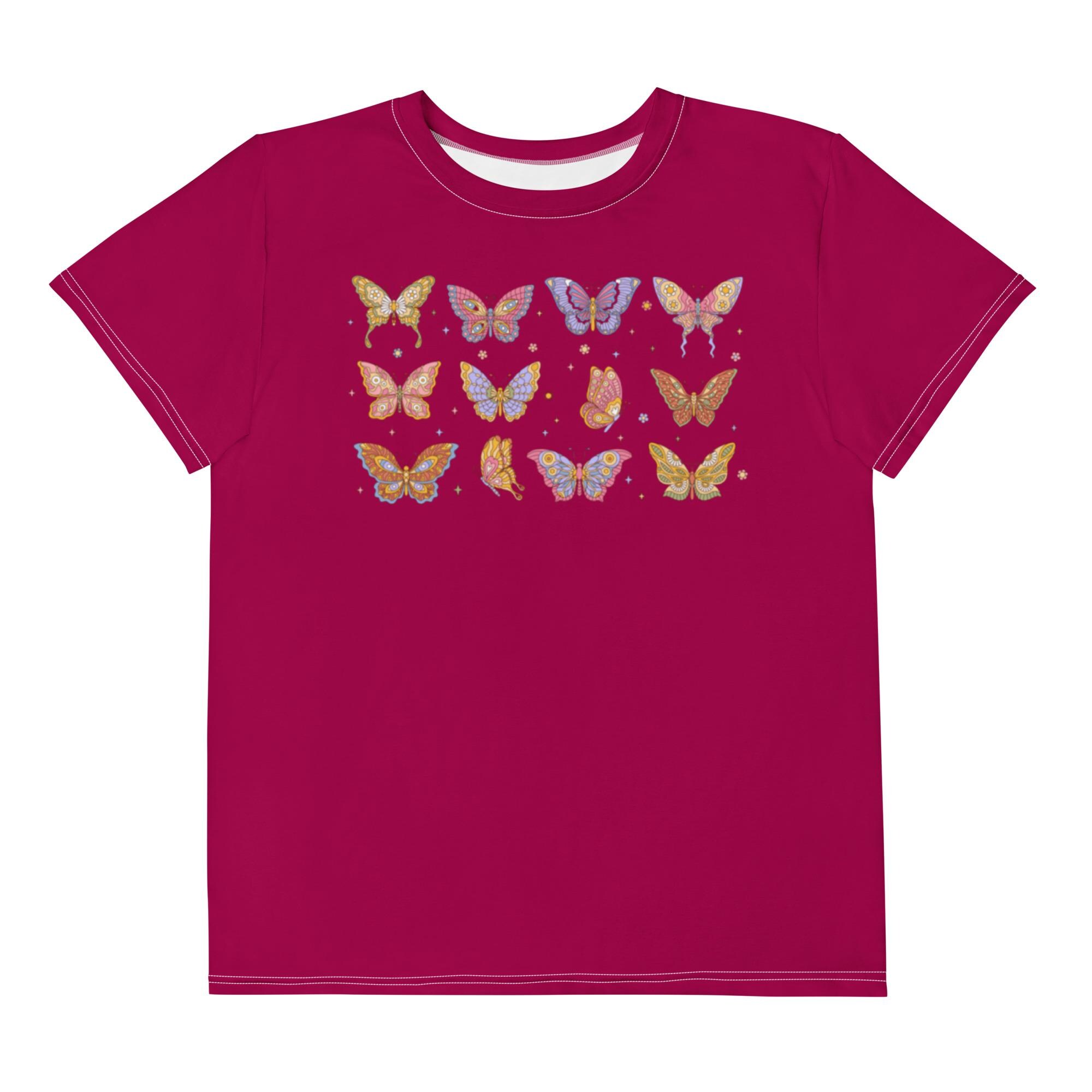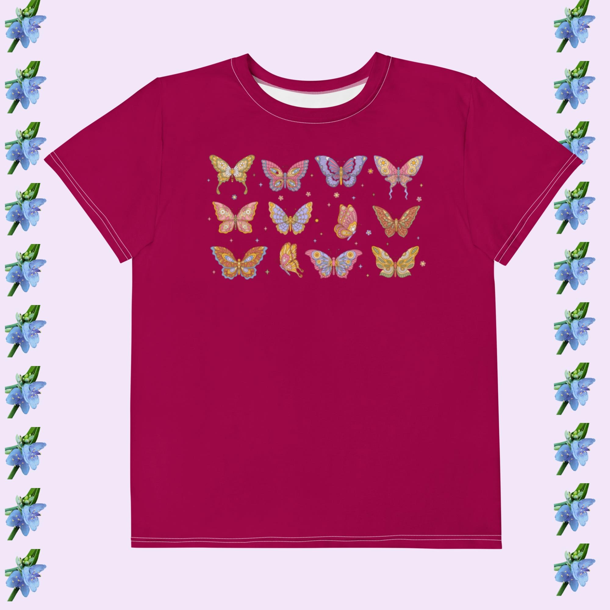 Elevate your young one's wardrobe with our Youth Cotton Crew Neck T-Shirt in vibrant burgundy, beautifully adorned with playful butterflies. Crafted from soft, breathable cotton, this t-shirt ensures all-day comfort while making a stylish statement. Perfect for casual outings, playdates, or just lounging at home. Available in various sizes, it's an ideal gift for birthdays or special occasions. Let your child express their unique style with this charming piece. Shop now and add a touch of whimsy to their closet!