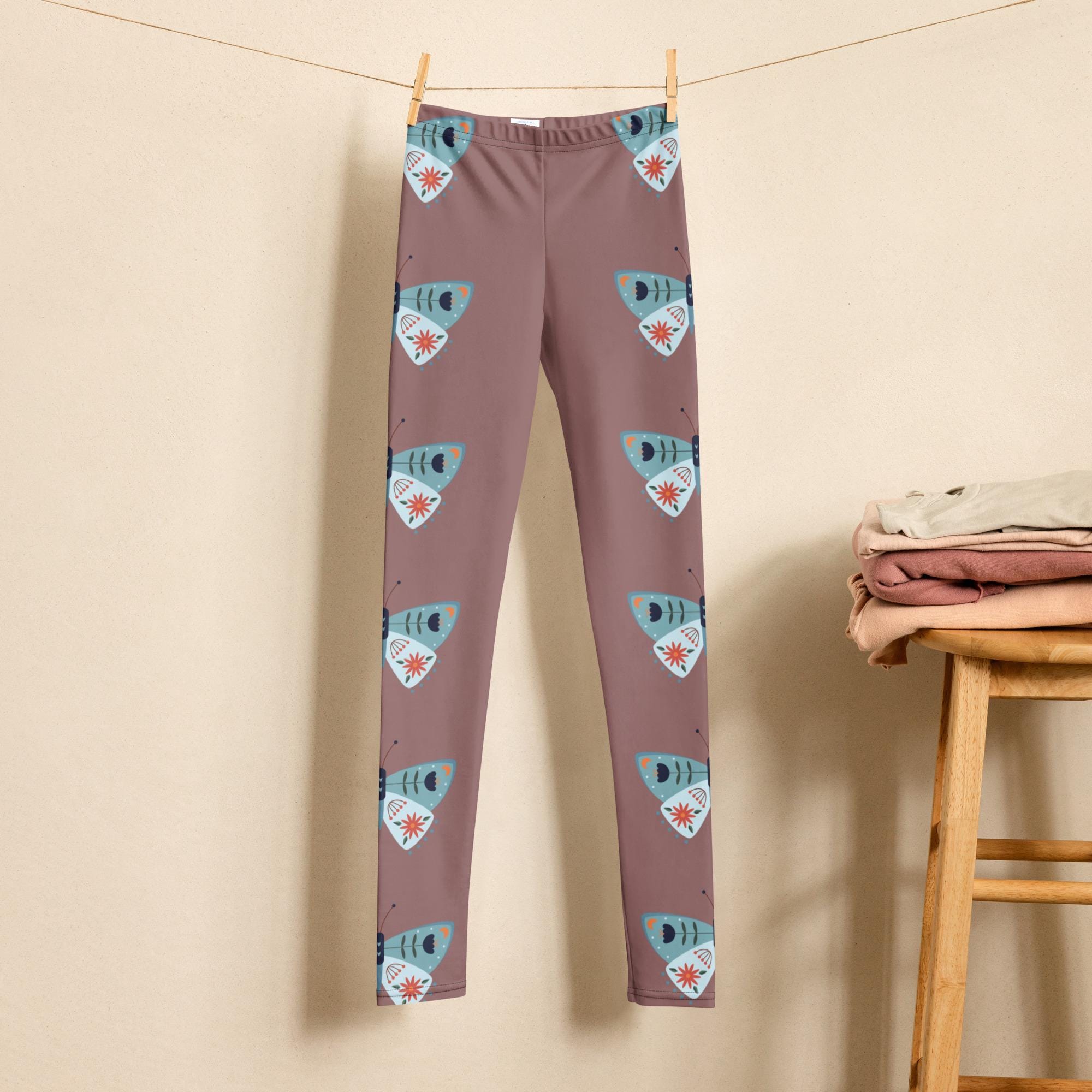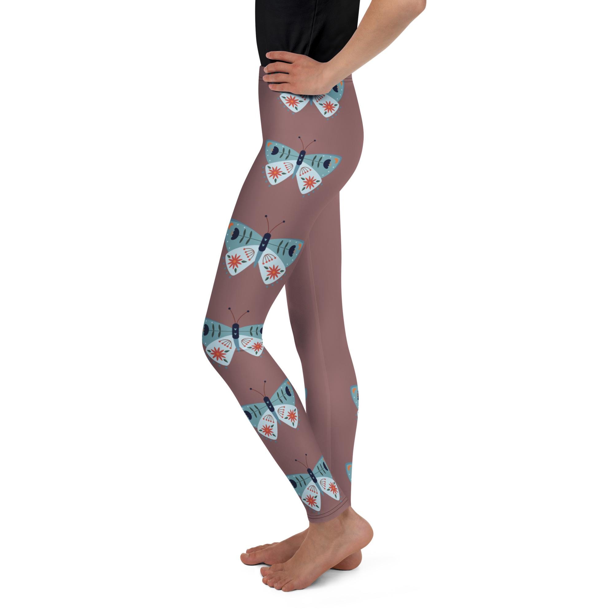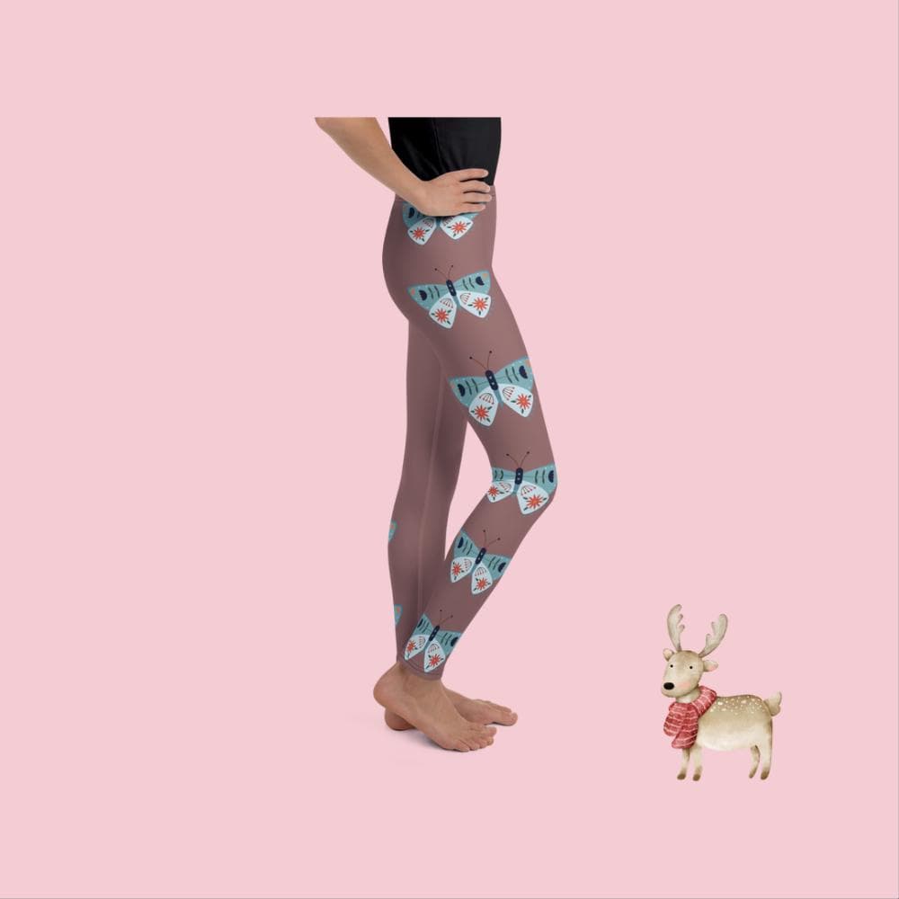 Elevate your child's wardrobe with our Taupe Youth Leggings, featuring a captivating blue moth design. These stylish leggings combine comfort and creativity, perfect for playdates or lounging at home. Made from soft, stretchy fabric, they ensure a perfect fit for all-day wear. The unique moth pattern adds a touch of whimsy, making them a standout piece. Ideal for budding trendsetters, these leggings are a must-have for any young fashionista. Shop now and let their style take flight!