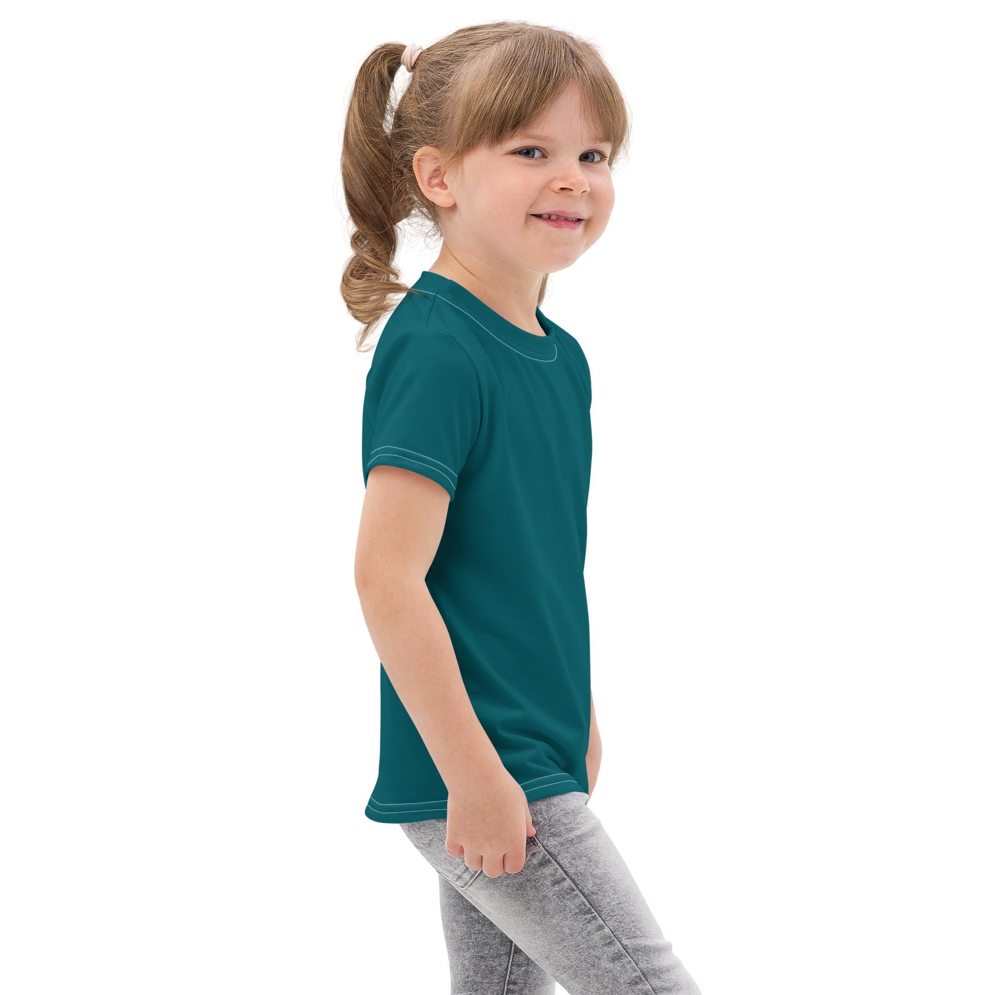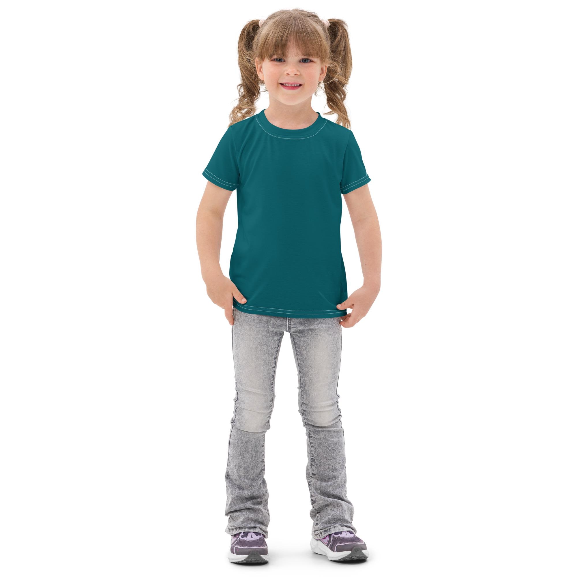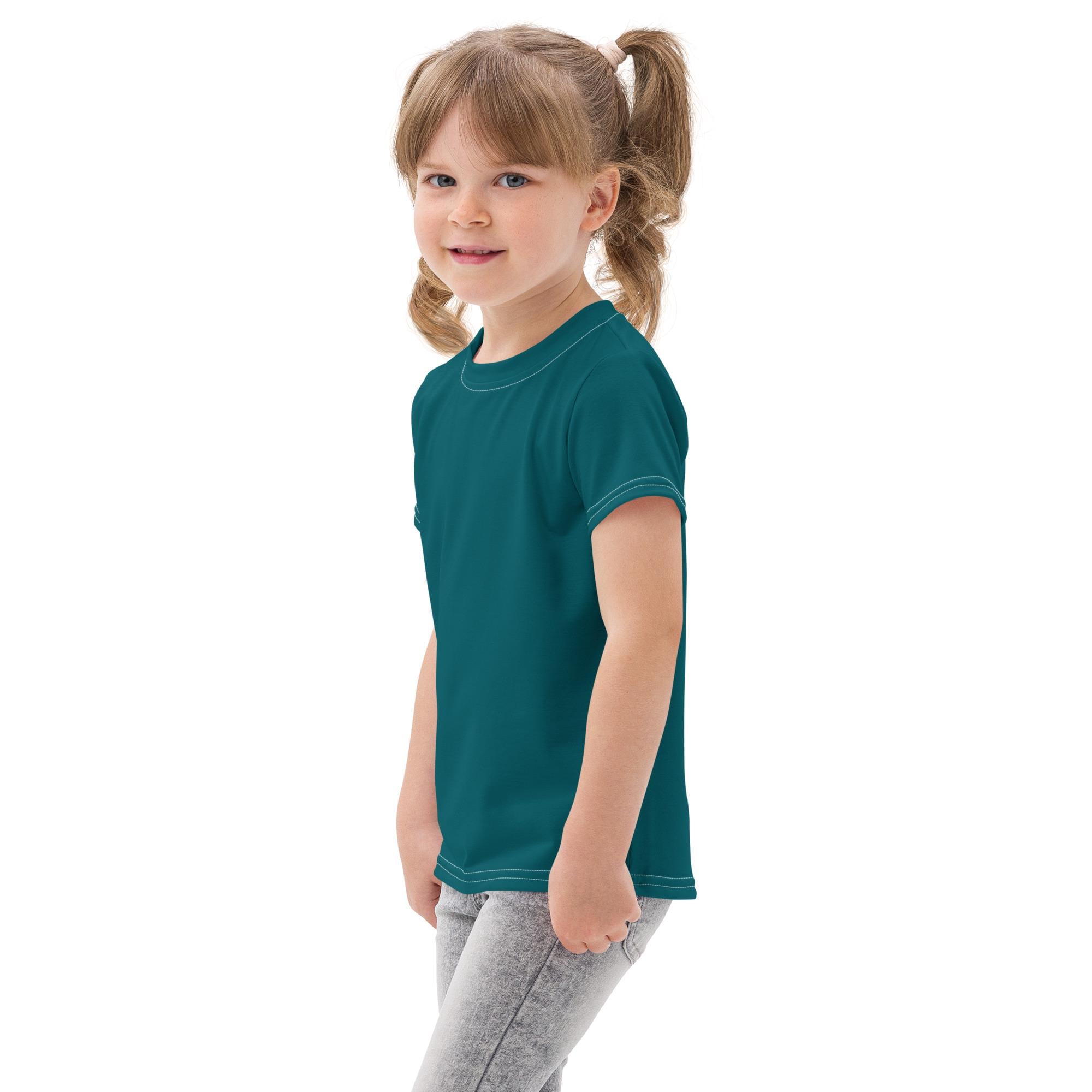 Elevate her wardrobe with our Girls Green-Blue Solid Color Cotton Crew Neck T-Shirt! This stylish and comfortable tee is perfect for playdates or casual outings. Crafted from soft, high-quality cotton, it offers breathability and ease of movement. The vibrant green-blue hue adds a pop of color to any outfit, making it a versatile staple for any season. Pair it with jeans, skirts, or shorts for a trendy look she'll love. Available in various sizes. Get yours today and let her shine!
