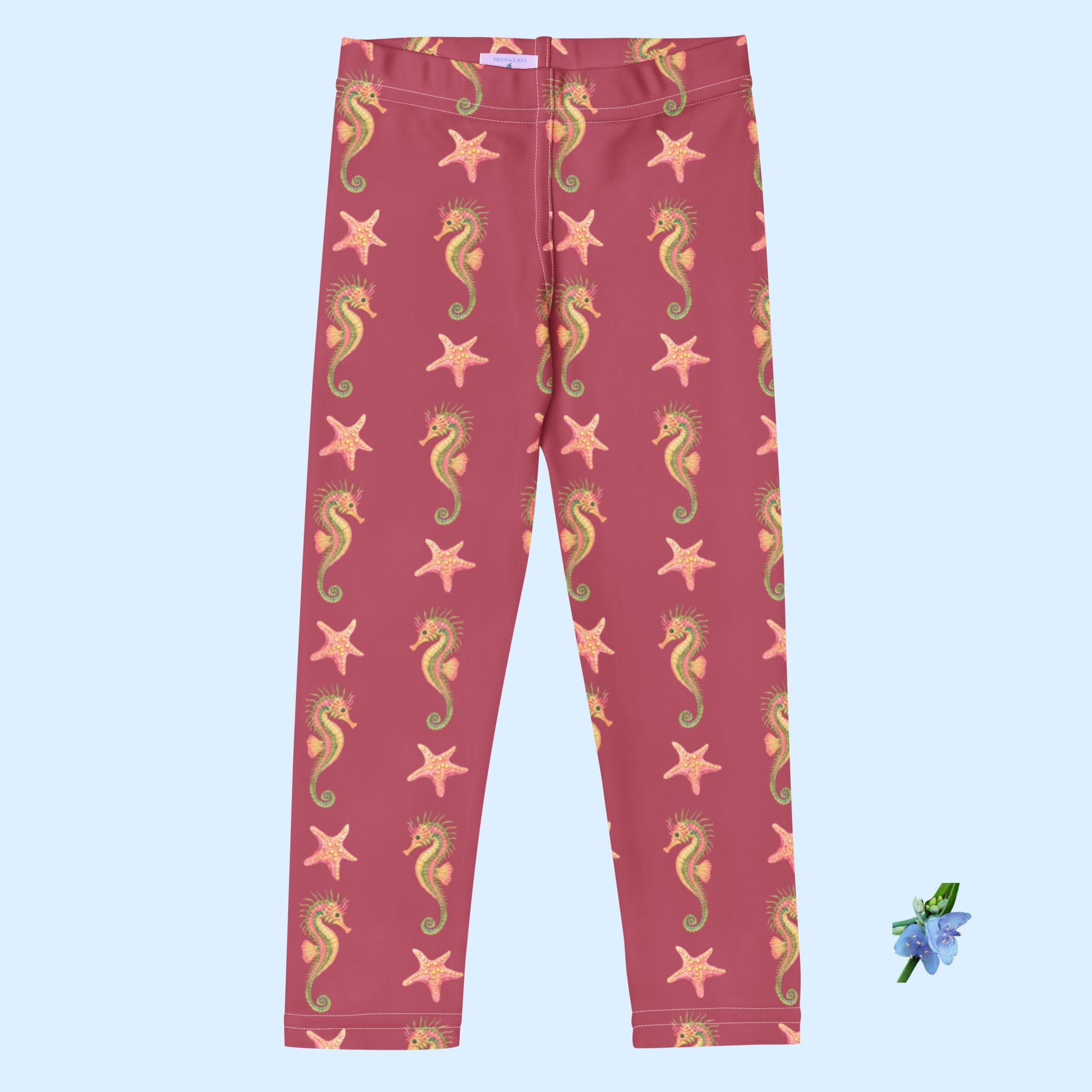Dive into style with our Dark Pink Girls Leggings featuring a whimsical watercolor AngelFish and starfish print! Perfect for little ocean enthusiasts, these leggings are designed for comfort and flexibility, making them ideal for playdates, dance class, or lounging at home. Crafted with soft, breathable fabric, they offer a snug fit that moves with your child. Embrace adventure and creativity with these unique leggings that are sure to make a splash in any outfit.