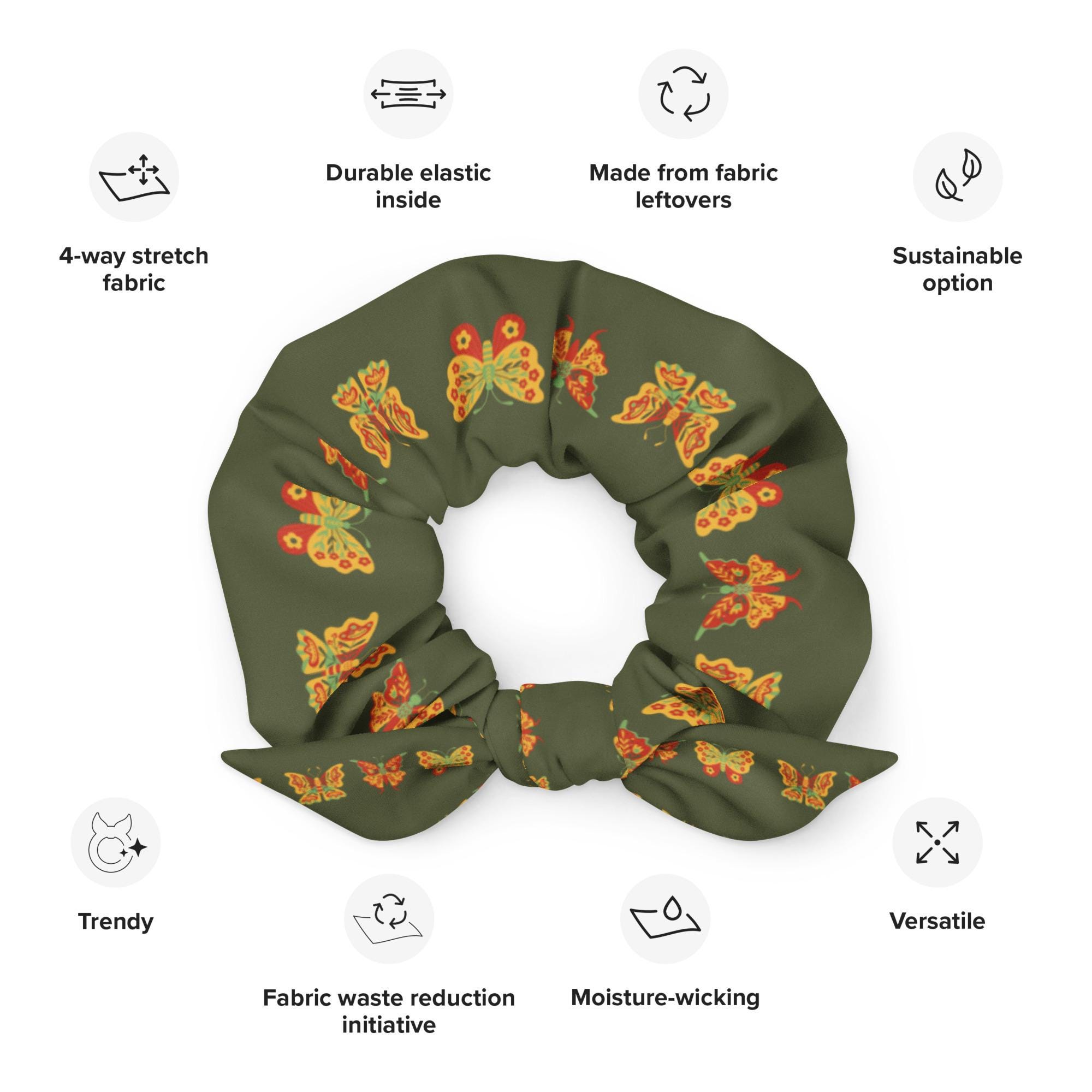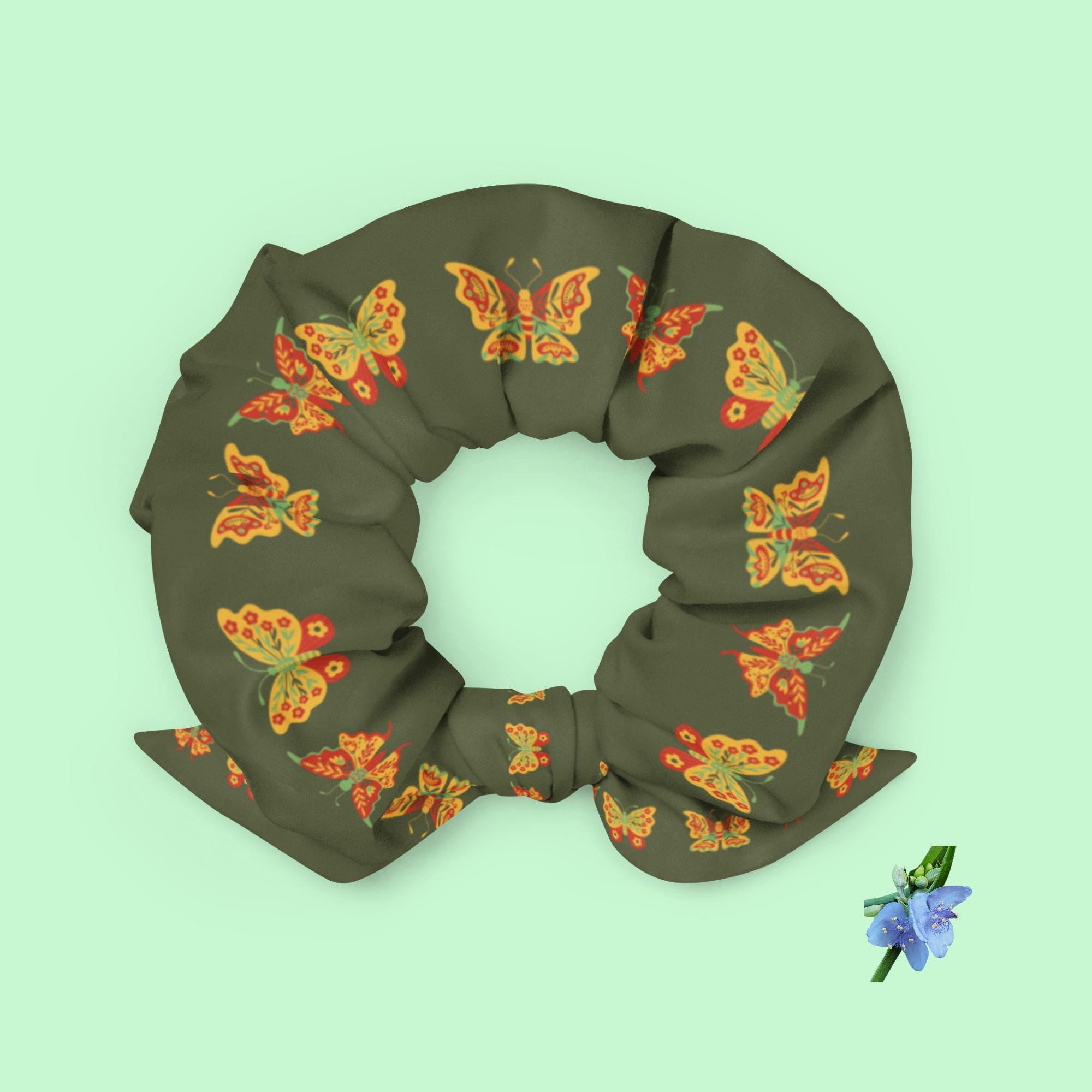 Elevate your hair accessory game with our Recycled Microfiber Scrunchie in a vibrant green, adorned with playful red and yellow butterflies! This eco-friendly scrunchie not only adds a pop of color to any outfit but also helps reduce waste. Perfect for all hair types, it offers a comfortable fit while making a stylish statement. Ideal for casual wear or dressing up for a fun outing. Treat yourself or gift it to a friend who loves unique, sustainable fashion!