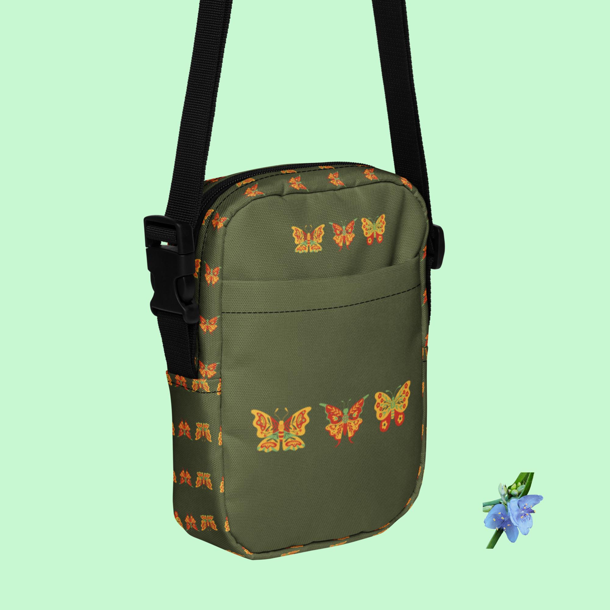 Elevate your style with our Utility Crossbody Bag in a vibrant green, adorned with stunning red and yellow butterflies! Perfect for everyday use, this chic and functional bag offers ample space for your essentials while keeping you hands-free. The adjustable strap ensures a comfortable fit, making it ideal for outings, festivals, or casual days out. With its unique design, this crossbody bag adds a pop of color to any outfit. Embrace practicality and style – grab yours today!