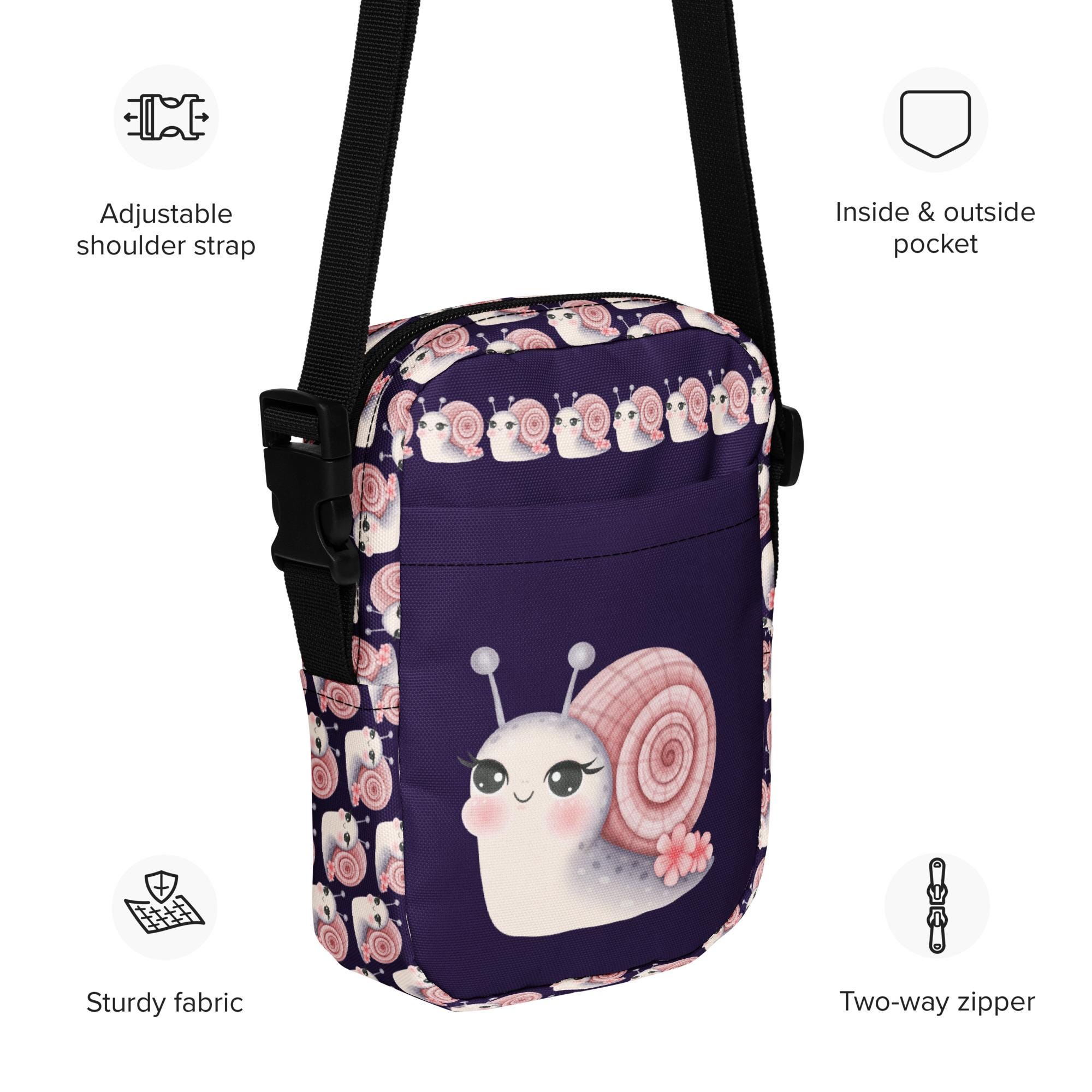 Embrace whimsy with our Pink Snail Design on a Purple Utility Crossbody Bag! Perfect for on-the-go style, this adorable bag features a vibrant purple hue adorned with a charming pink snail illustration. The spacious interior keeps your essentials organized, while the adjustable strap ensures comfort. Ideal for casual outings, festivals, or everyday adventures. Stand out with this unique accessory that combines fun and functionality. Grab yours today and add a splash of color to your wardrobe!